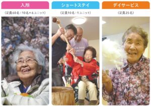 高齢者支援・介護、障害福祉、保育・子育ての 三つの分野で事業を行っている社会福祉法人です。 ユーアイ村がめざすのは、 介護、障害福祉、保育(子育て)の まるごと包括ケアシステムです。