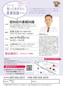 【知っておきたい医療知識「認知症の基礎知識」を開催します】